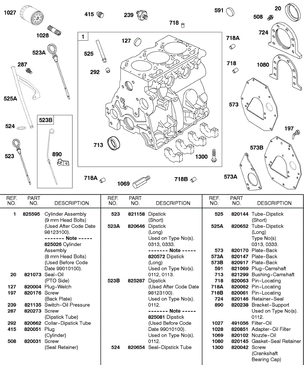 Parts for Briggs & Stratton 580447-0333-E2: Cylinder, Backplate, Oil, Dipsticks Parts