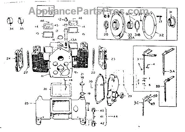 Parts for Onan 6CCK-331M/1887E: Cylinder Block, Oil Base & Gear Cover Group Parts