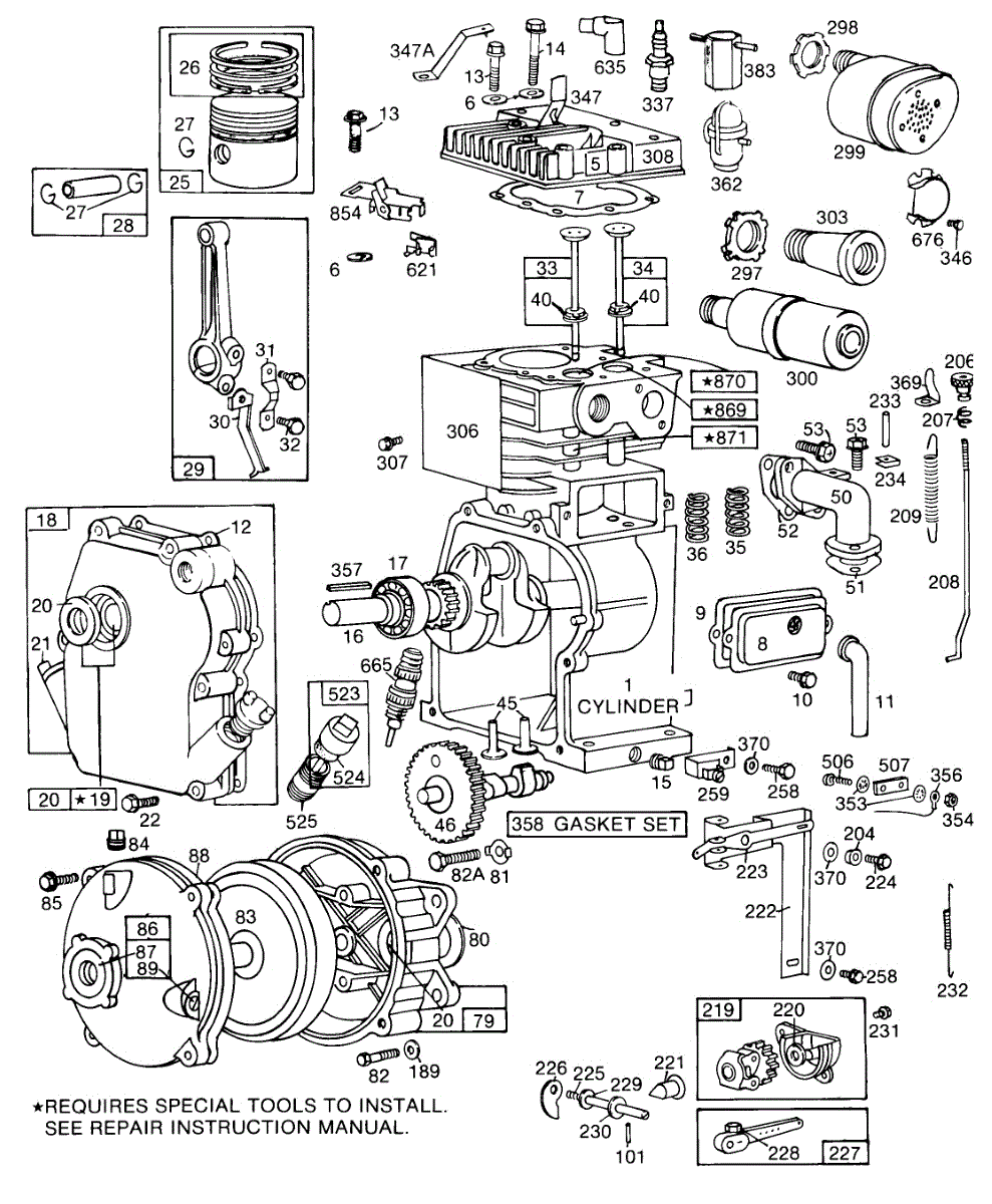 Parts for Briggs & Stratton 081352-0667-01: Cylinder,Crankcase,Gear Case Parts
