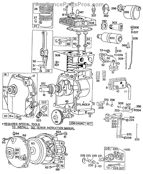 Parts for Briggs & Stratton 061431-9425-81: Cylinder,Crankcase,Gear Case Parts