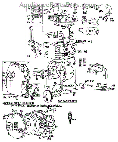 Parts for Briggs & Stratton 080131-9080-71: Cylinder,Crankcase,Gear Case Parts