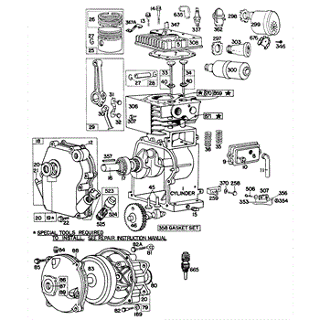 Parts for Briggs & Stratton 080132-9080-80: Cylinder,Crankcase,Gear Case Parts