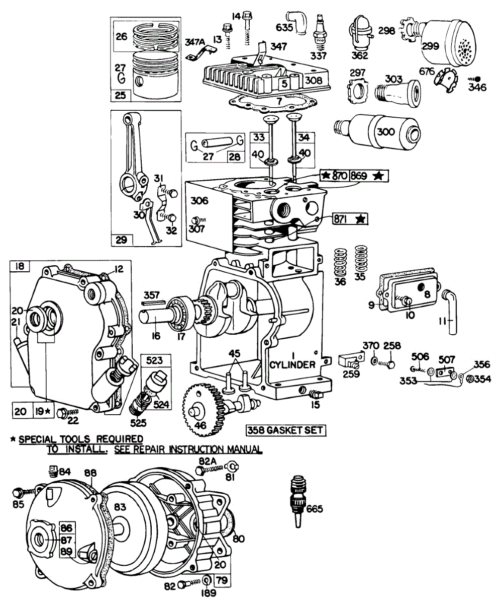 Parts for Briggs & Stratton 081102-0130-99: Cylinder,Crankcase,Gear Case Parts