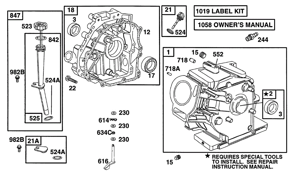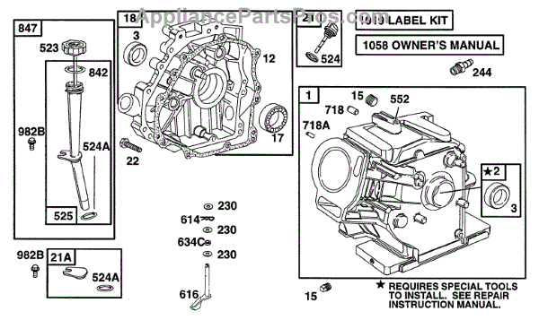 Parts for Briggs & Stratton 161432-0010-01: Cylinder, Crankcase,Oil Fill Parts