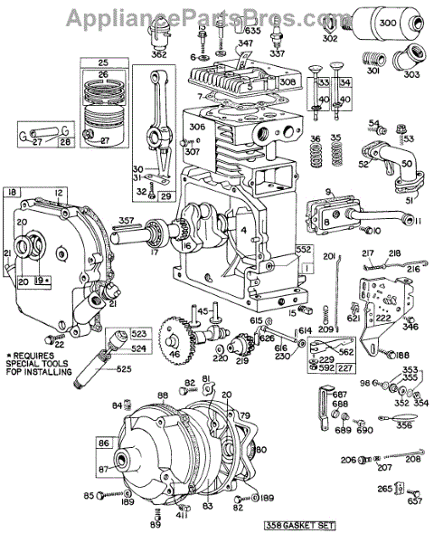 Parts for Briggs & Stratton 147402-0213-99: Cylinder, Crankcase,Piston Parts