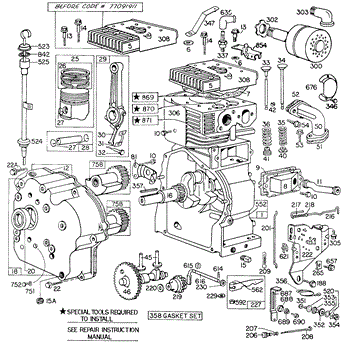 Parts for Briggs & Stratton 251417-0153-99: Cylinder,Crankcase,Piston Parts