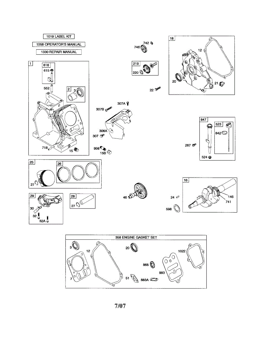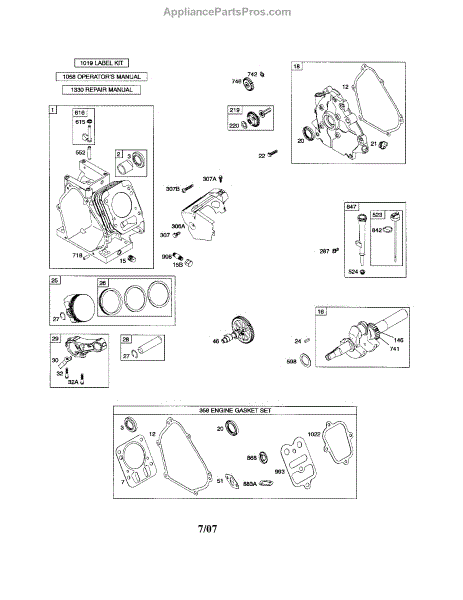 Complete engine gasket set seals critical engine components. Replace when rebuilding your engine or if you notice oil leaks. Verify fit with your model number.