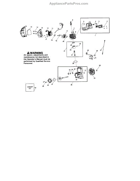 This genuine OEM replacement part is a rebuild kit of various gaskets used in a gas-powered leaf blower engine. This kit includes a crankshaft gasket, a carburetor gasket and carburetor adapter gasket, a cylinder base gasket, and a muffler shield. Gaskets act like a seal between different parts of an engine that keeps different liquids and gasses from passing into the wrong section of the engine. Gaskets can become worn out and crack or shrink over time through repeated use and exposure to exhaust and heat in the engine. A common sign of a fault gasket is if your engine is not running at full capacity or if it stalls out shortly after ignition. Changing out a gasket should not be a difficult job, but it will depend on which gasket you are replacing. Making this repair will require a screwdriver and set of pliers. This gasket rebuild kit is compatible with Poulan, Weed Eater, and Husqvarna gas powered leaf blowers. These gaskets are made of a mix of plastic and rubber. This kit ships individually and is sourced directly from its original manufacturer.