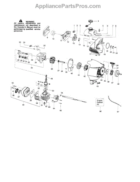 This kit provides authentic gaskets and seals for use with the carburetor in select models of trimmer and pruner. The seals and the gaskets are essential parts of the machine to ensure that it functions efficiently. The seals are used as a means to help stop excess airflow from making its way into the carburetor. Too much air could cause problems with the performance of the engine. Gaskets and seals are parts that will need to be replaced periodically. They can begin to wear down and degrade over time. When this happens, it will likely cause air leaks that can create problems for the machine's performance. They should be checked regularly and replaced as needed. Whenever doing any work or maintenance to the carburetor, it may be a good idea to replace them. This genuine OEM set of gaskets and seals is sold individually and does not come with any tools needed for the replacement. The parts can work for certain models of string trimmers and pole pruners. Compatible brands include Craftsman, Poulan, and Poulan Pro.