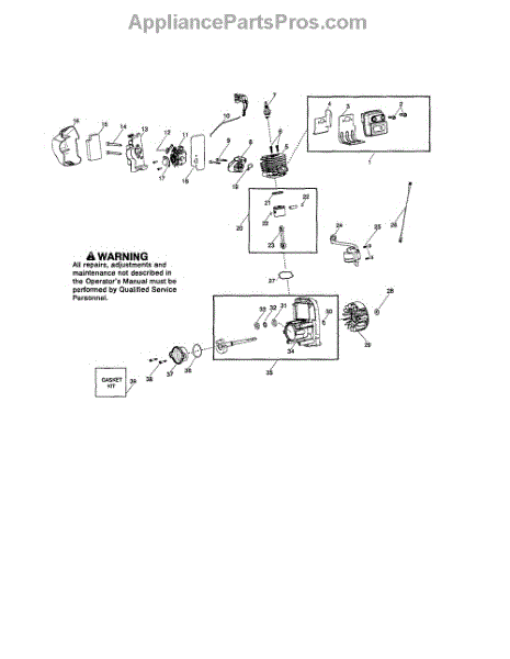 This genuine OEM replacement part is a rebuild kit of various gaskets used in a gas-powered leaf blower engine. This kit includes a crankshaft gasket, a carburetor gasket and carburetor adapter gasket, a cylinder base gasket, and a muffler shield. Gaskets act like a seal between different parts of an engine that keeps different liquids and gasses from passing into the wrong section of the engine. Gaskets can become worn out and crack or shrink over time through repeated use and exposure to exhaust and heat in the engine. A common sign of a fault gasket is if your engine is not running at full capacity or if it stalls out shortly after ignition. Changing out a gasket should not be a difficult job, but it will depend on which gasket you are replacing. Making this repair will require a screwdriver and set of pliers. This gasket rebuild kit is compatible with Poulan, Weed Eater, and Husqvarna gas powered leaf blowers. These gaskets are made of a mix of plastic and rubber. This kit ships individually and is sourced directly from its original manufacturer.