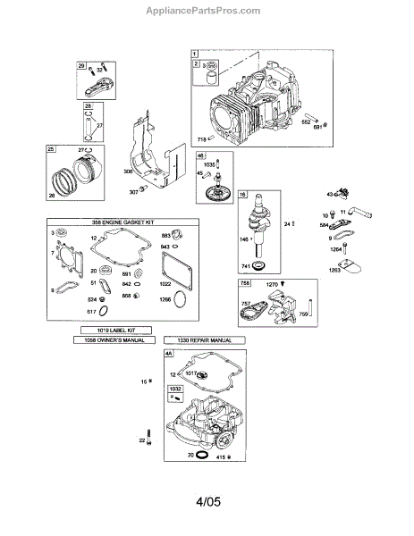 Parts for Briggs & Stratton 31Q700 (0036-0466): Cylinder / Crankshaft / Engine-Sump Parts