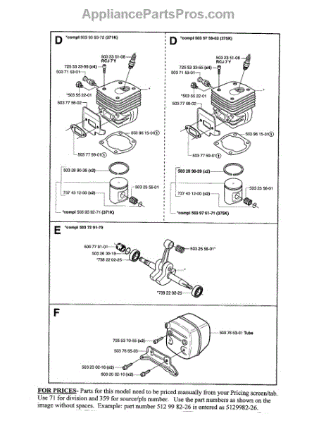 Parts for Husqvarna 371K: Cylinder, Crankshaft, Muffler Parts