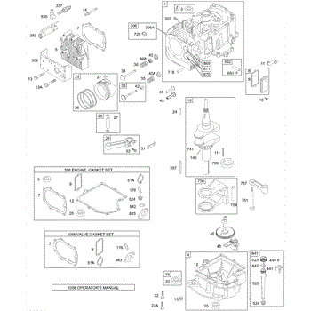 Parts for Briggs & Stratton 195707-0453-A1: Cylinder, Crankshaft, Piston, Head, Sump, Counterweight, Oil, Gasket Kits Parts