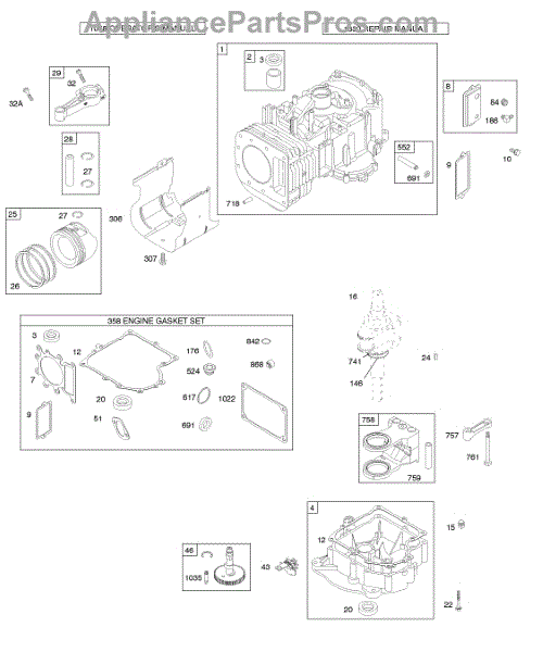Parts for Briggs & Stratton 28U707-1175-E1: Cylinder, Crankshaft, Sump, Piston / Rings Parts