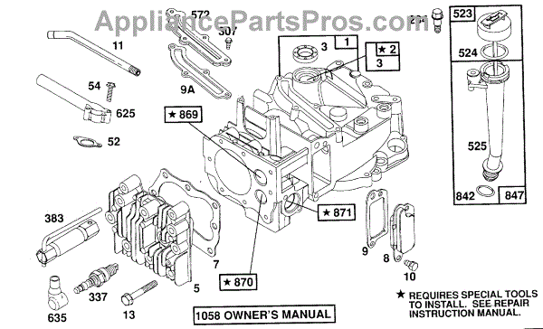 Parts for Briggs & Stratton 121802-0420-99: Cylinder,Cyl. Head,Oil Fill Parts