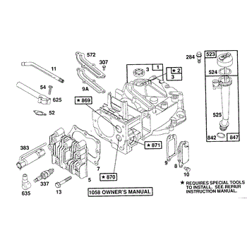 Parts for Briggs & Stratton 121802-3430-99: Cylinder,Cyl. Head,Oil Fill Parts