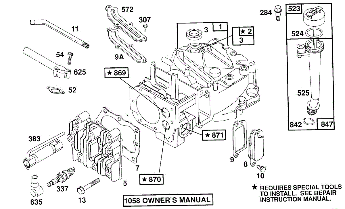 Parts for Briggs & Stratton 121807-3415-01: Cylinder,Cyl. Head,Oil Fill Parts