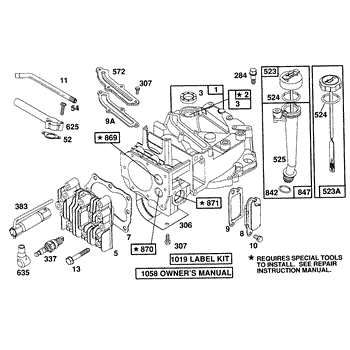 Parts for Briggs & Stratton 122702-3310-01: Cylinder,Cyl. Head,Oil Fill Parts