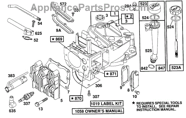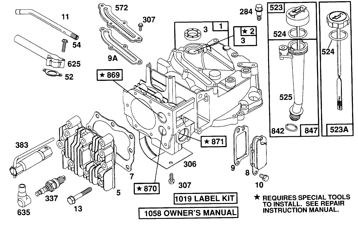 Parts for Briggs & Stratton 122707-3332-01: Cylinder,Cyl. Head,Oil Fill Parts