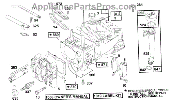 Parts for Briggs & Stratton 123707-0133-01: Cylinder,Cyl. Head,Oil Fill Parts