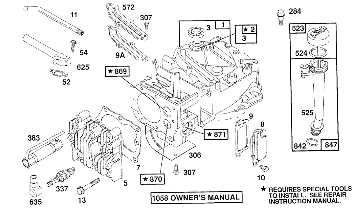 Parts for Briggs & Stratton 123887-0568-21: Cylinder,Cyl. Head,Oil Fill Parts