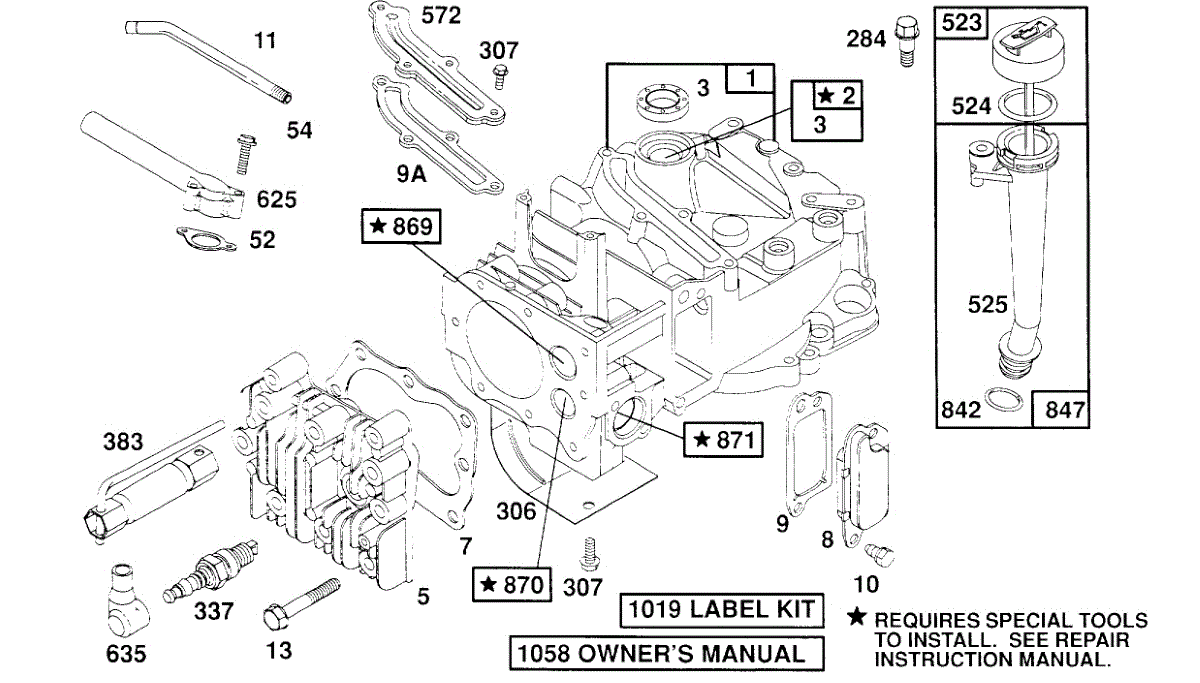 Parts for Briggs & Stratton 124707-0173-99: Cylinder,Cyl. Head,Oil Fill Parts