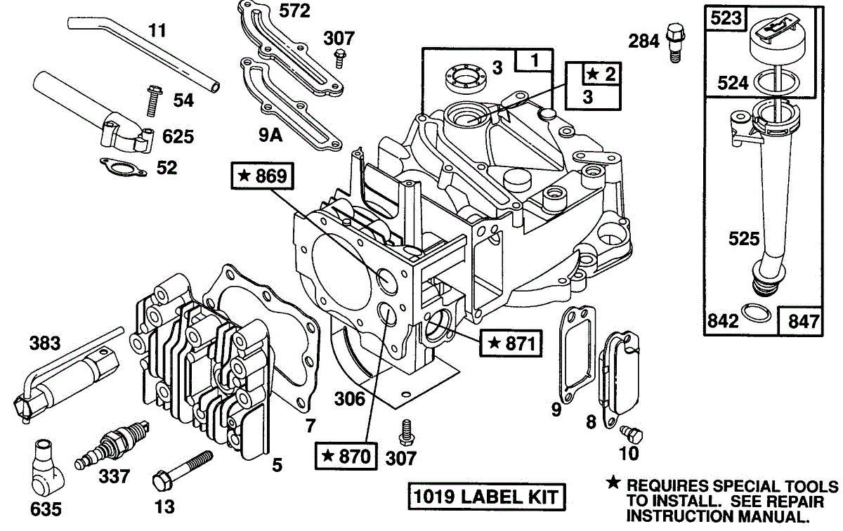 Parts for Briggs & Stratton 125702-4001-01: Cylinder,Cyl. Head,Oil Fill Parts