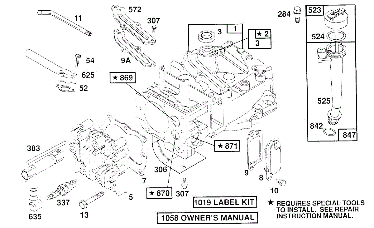Parts for Briggs & Stratton 126702-0123-02: Cylinder,Cyl. Head,Oil Fill Parts