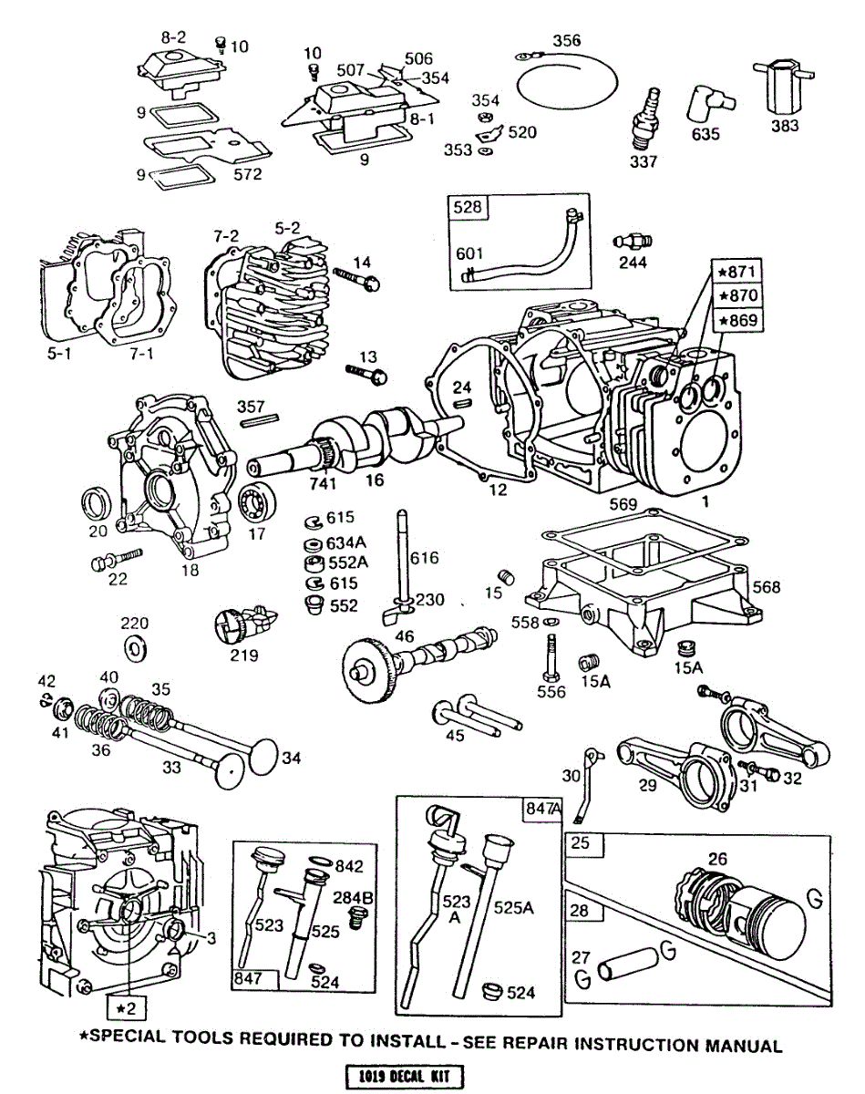 Parts for Briggs & Stratton 400437-0016-01: Cylinder,Cyl. Heads,Psiton Parts
