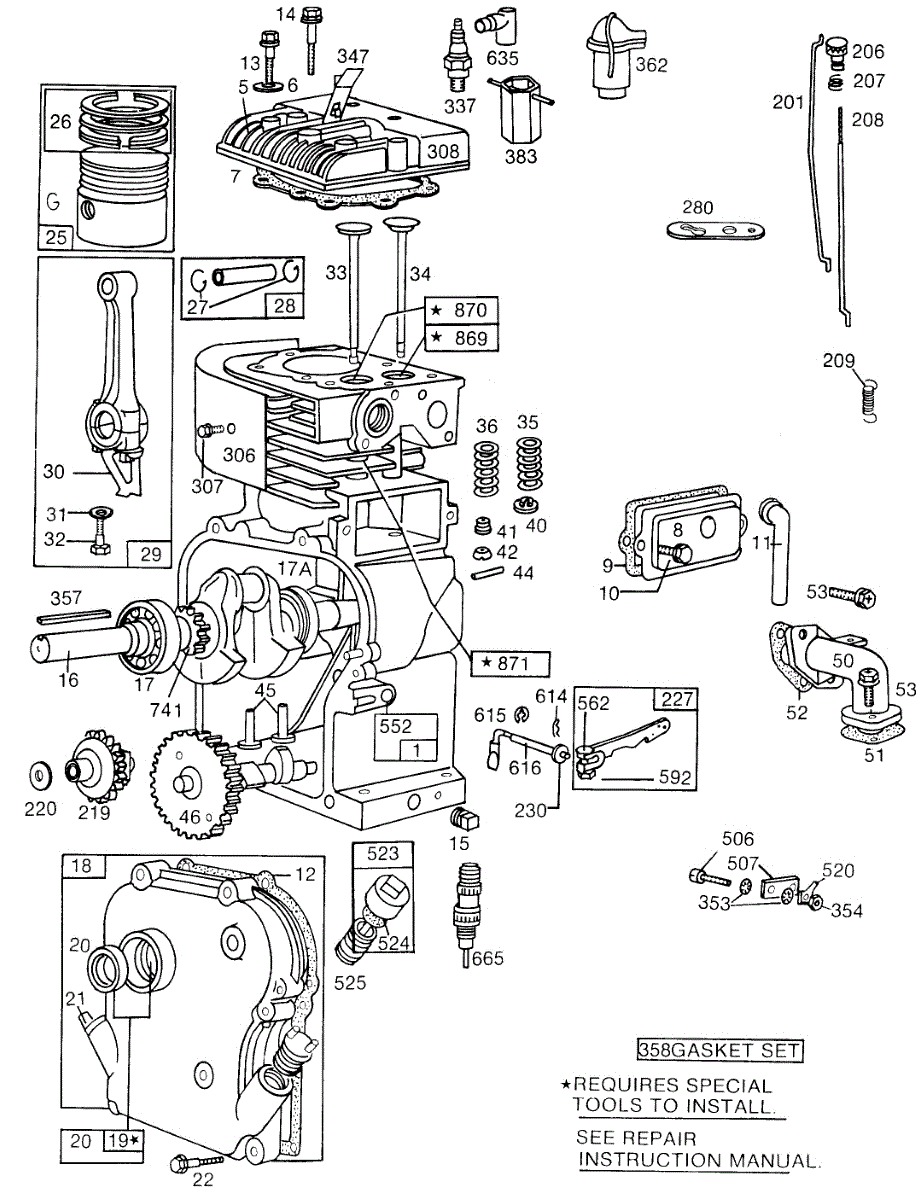 Parts for Briggs & Stratton 131432-2038-04: Cylinder,Cylinder Hd,Piston Parts