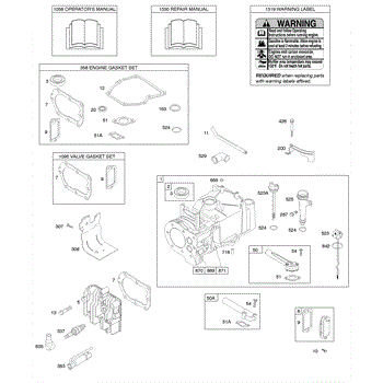 Parts for Briggs & Stratton 09G902-0144-B1: Cylinder, Cylinder Head, Gasket Set - Engine, Gasket Set - Valve, Lubrication, Operator's Manual, Warning Label Parts