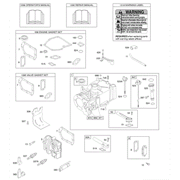Parts for Briggs & Stratton 10A902-2128-B1: Cylinder, Cylinder Head, Gasket Set - Engine, Gasket Set - Valve, Lubrication, Operator's Manual, Warning Label Parts