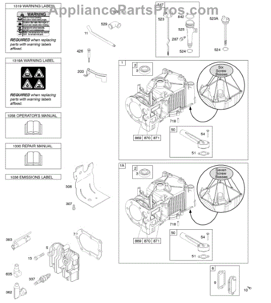 Parts for Briggs & Stratton 10T502-0162-B1: Cylinder, Cylinder Head, Lubrication, Operator's Manual, Warning Label Parts