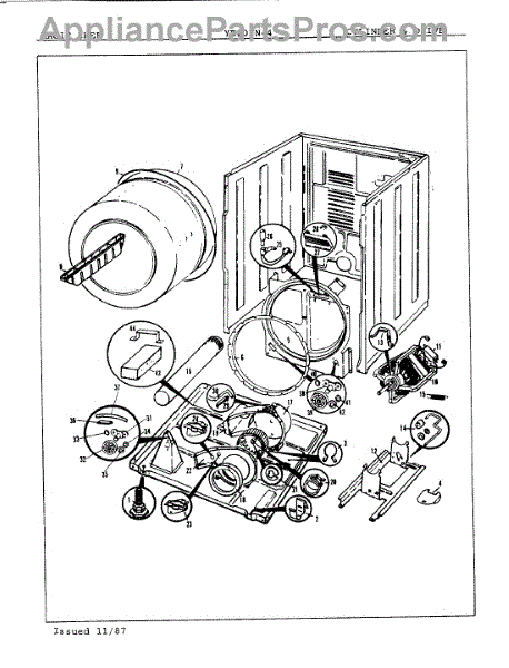 This dryer exhaust fan is used on some Admiral, Crosley, Hoover, Magic Chef, Maytag, Montgomery Ward and Norge brands. Size: 3-1/8 inches deep, 7 1/2 inch fin diameter, 6 3/4 inch hub diameter, 20 standard fins, 1/2 inch diameter motor shaft, 7/16 inch diameter motor shaft to flat side of shaft. Blower wheel clamp not included. For the clamp order 25-7855.
