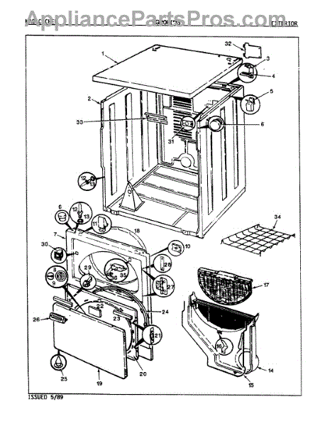 This dryer exhaust fan is used on some Admiral, Crosley, Hoover, Magic Chef, Maytag, Montgomery Ward and Norge brands. Size: 3-1/8 inches deep, 7 1/2 inch fin diameter, 6 3/4 inch hub diameter, 20 standard fins, 1/2 inch diameter motor shaft, 7/16 inch diameter motor shaft to flat side of shaft. Blower wheel clamp not included. For the clamp order 25-7855.