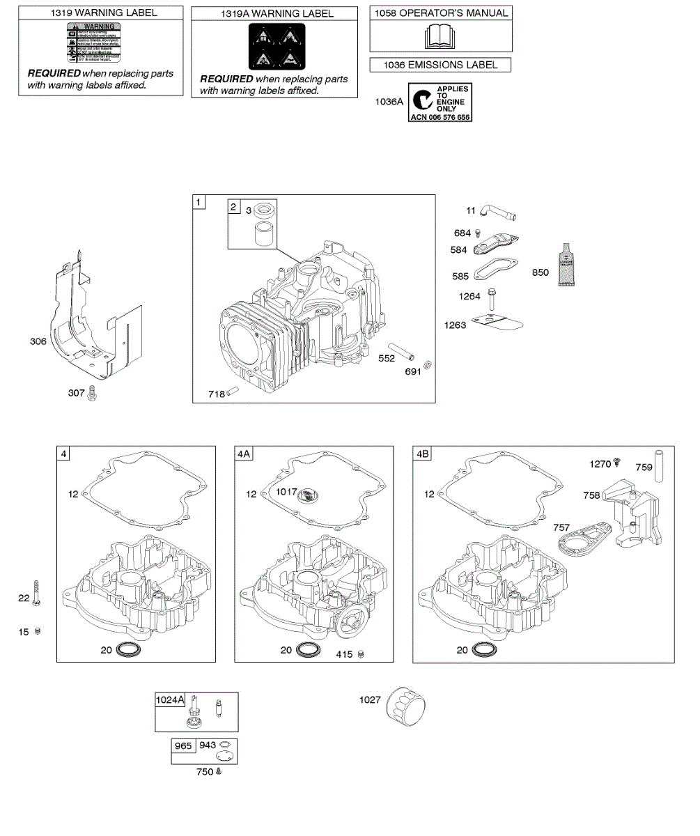 Parts for Briggs & Stratton 215872-0121-E1: Cylinder, Engine Sump, Lubrication Parts