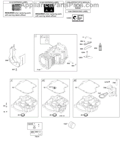 Parts for Briggs & Stratton 215872-0160-B1: Cylinder, Engine Sump, Lubrication Parts