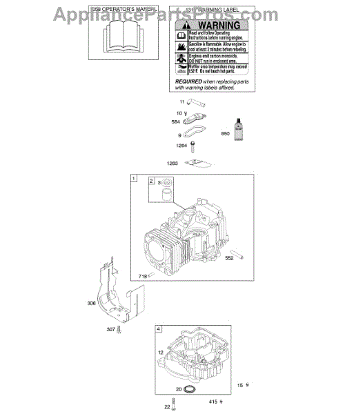 Parts for Briggs & Stratton 217707-0390-B1: Cylinder, Engine Sump, Operator's Manual, Warning Label Parts