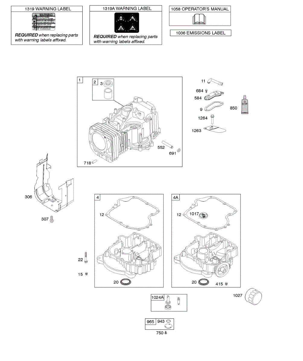 Parts for Briggs & Stratton 217877-0111-E1: Cylinder, Engine Sump, Lubrication, Operator's Manual, Warning Label Parts