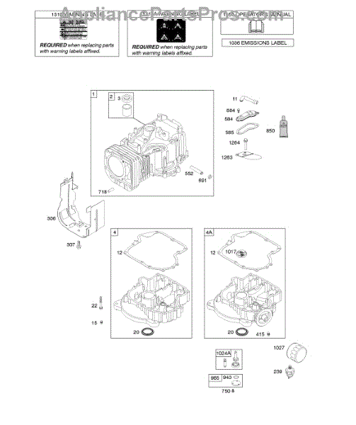 Parts for Briggs & Stratton 217907-0028-E9: Cylinder, Engine Sump, Lubrication, Operator's Manual, Warning Label Parts