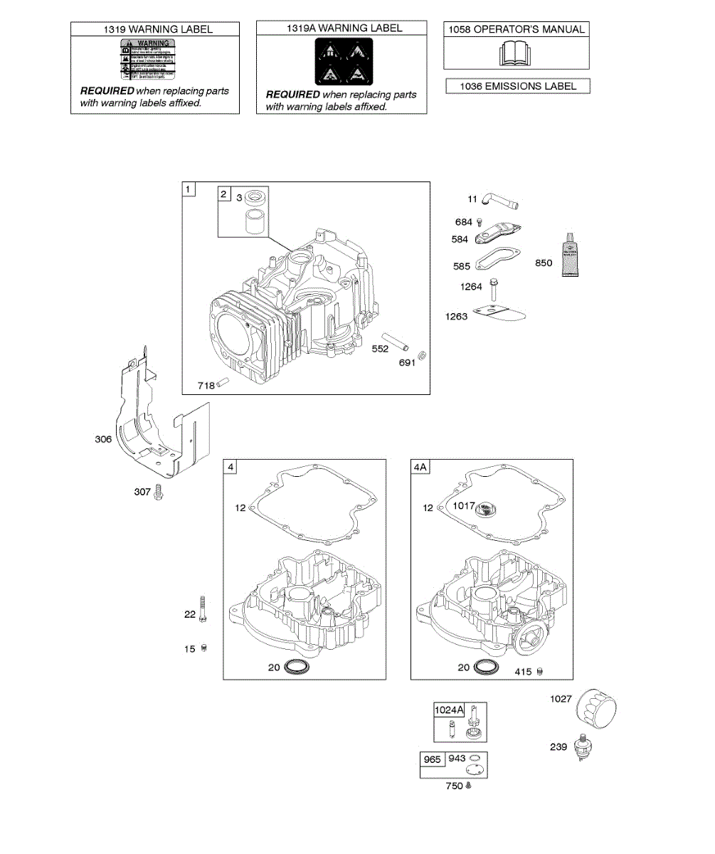 Parts for Briggs & Stratton 217907-0125-E1: Cylinder, Engine Sump, Lubrication, Operator's Manual, Warning Label Parts