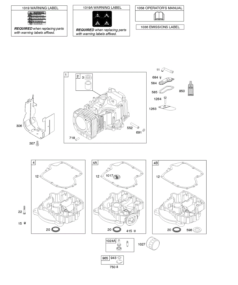 Parts for Briggs & Stratton 219802-0118-E1: Cylinder, Engine Sump, Lubrication, Operator's Manual, Warning Label Parts