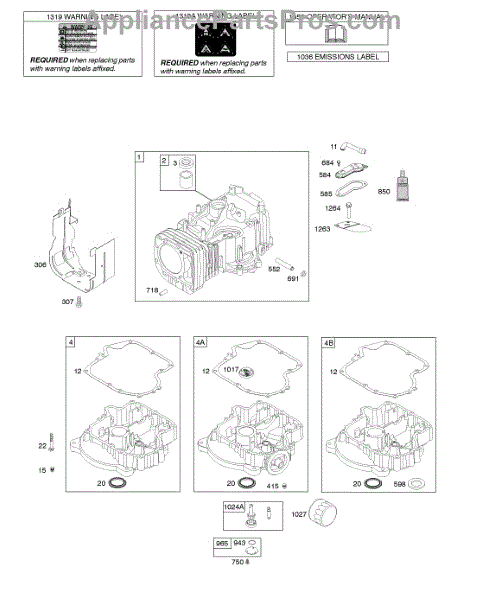 Parts for Briggs & Stratton 219872-0134-E1: Cylinder, Engine Sump, Lubrication, Operator's Manual, Warning Label Parts