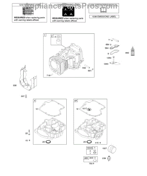 Parts for Briggs & Stratton 219977-0174-B1: Cylinder, Engine Sump, Lubrication, Operator's Manual, Warning Label Parts