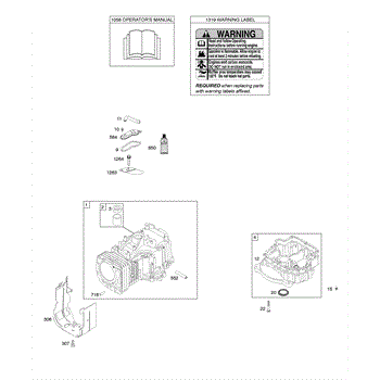 Parts for Briggs & Stratton 21B707-0505-B2: Cylinder, Engine Sump, Operator's Manual, Warning Label Parts