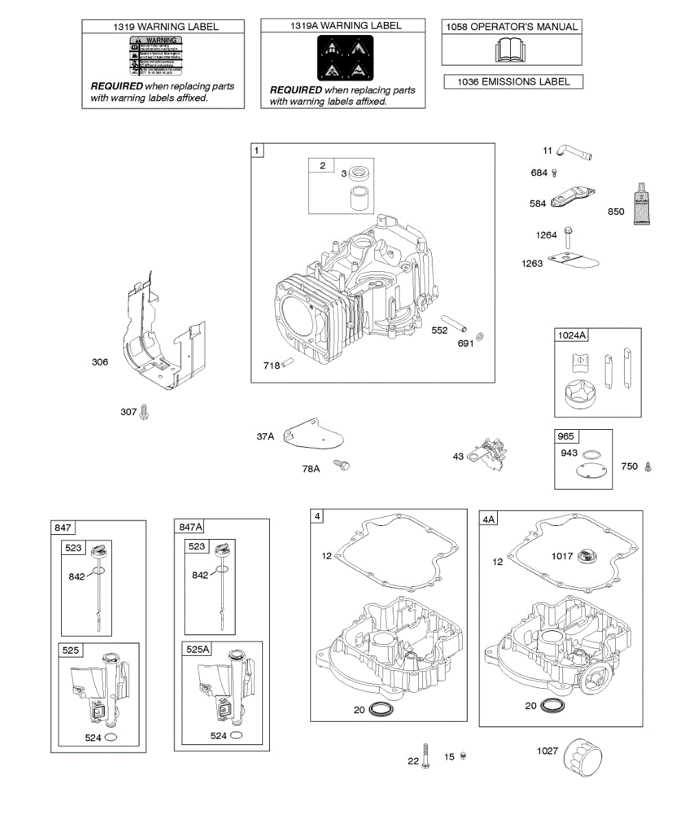 Parts for Briggs & Stratton 21R607-0005-H1: Cylinder, Engine Sump, Lubrication, Oil Fill Parts