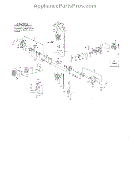 This gasket kit is a genuine Husqvarna part, sold individually. This gasket kit can be used as a replacement part in a string trimmer. The gasket kit comes with all of the necessary components required to facilitate a complete replacement or a new installation of a gasket within a string trimmer. The purpose of a gasket in a string trimmer is to seal off a certain internal area of the appliance so that oil or internal materials cannot leak out of the area of the gasket and debris cannot pass into the area of the gasket.The gasket kit might need to be ordered to conduct a replacement of a gasket that has suffered damage over general wear and tear from long-term use of the string trimmer or as a result of an accidental collision with a hard object that rendered the gasket beyond functionality. If this occurs, the gasket kit should be ordered as a genuine OEM replacement part before using the string trimmer again.This is a genuine OEM replacement directly from the manufacturer. It is sold individually. This gasket kit is compatible with the following outdoor appliance brands: Husqvarna, Craftsman, Poulan, and Poulan Pro.