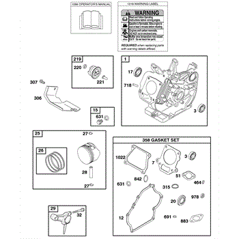Parts for Briggs & Stratton 117437-0628-B1: Cylinder, Gasket Set - Engine, Operator's Manual, Piston, Rings, Connecting Rod, Warning Label Parts