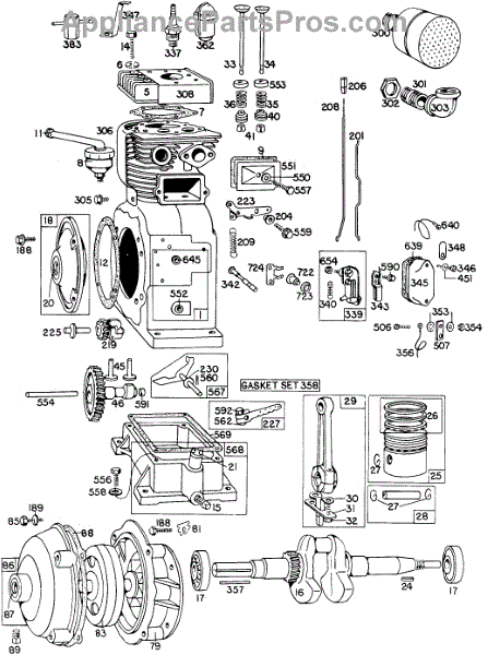 Parts for Briggs & Stratton 200401-0190-99: Cylinder,Gear Case,Piston Parts