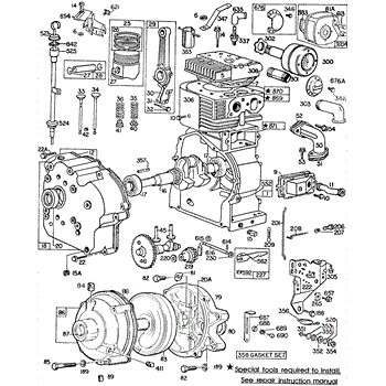 Parts for Briggs & Stratton 220432-0135-99: Cylinder,Gear Case,Piston Parts